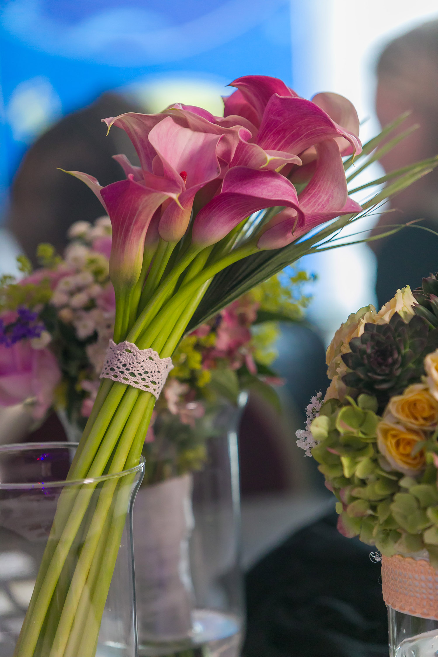 Zima – pokud nevěsta touží po exotických květinách, přichází její čas. Jelikož na jižní polokouli právě vrcholí léto, jsou cenově dostupné. Mimo exotických rostlin se dá uvázat zajímavá kytice v kombinaci jehličí, sukulenty, barevný vřes, brassica, růže. Barvám dominuje bílá, stříbrná, zlatá, červená. Vládnou kontrasty, lze si vyhrát s materiálovou strukturou a doplňky, kterým se v jiných obdobích vyhýbám.